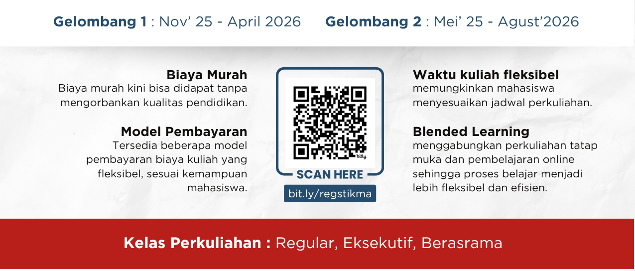 PMB – STT STIKMA Internasional STT STIKMA Internasional membuka pendaftaran tahun ajaran 2026/2027, Gelombang 1 telah dibuka mulai 01 November 2025 – 30 April 2026.